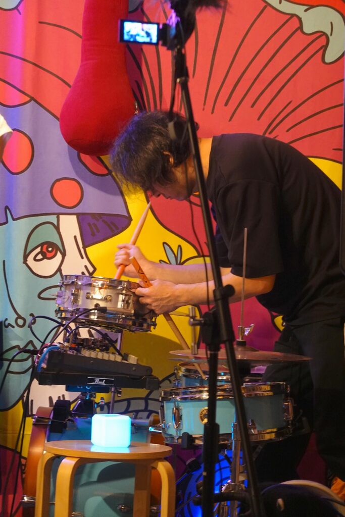 会場はお酒も飲める気さくなスペースなので、「ふらっと寄って、音と絵を眺めながら一杯」くらいの雰囲気で大丈夫です。